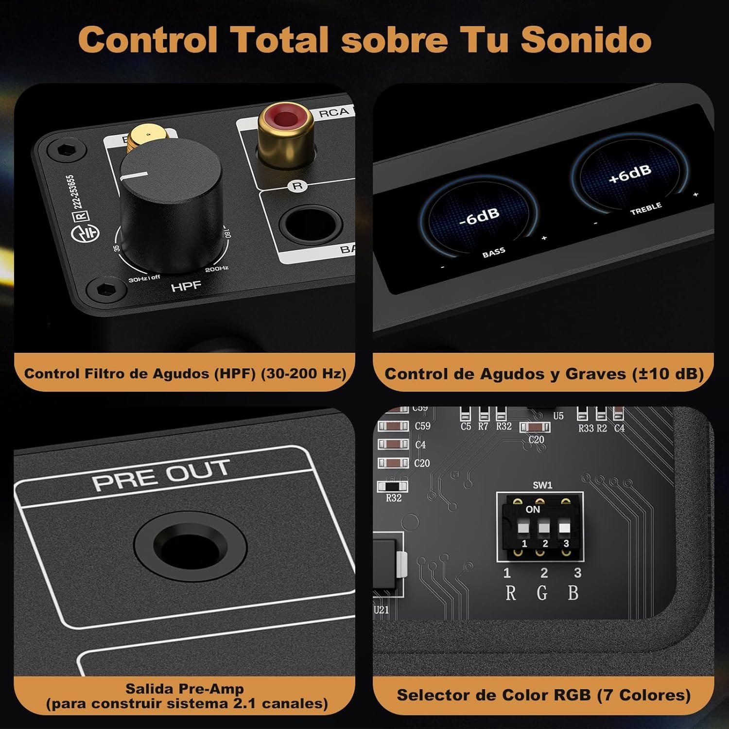 - Control de audio todo en uno: disfrute de un sonido puro con el modo Bypass, mientras que los controles de graves y agud…